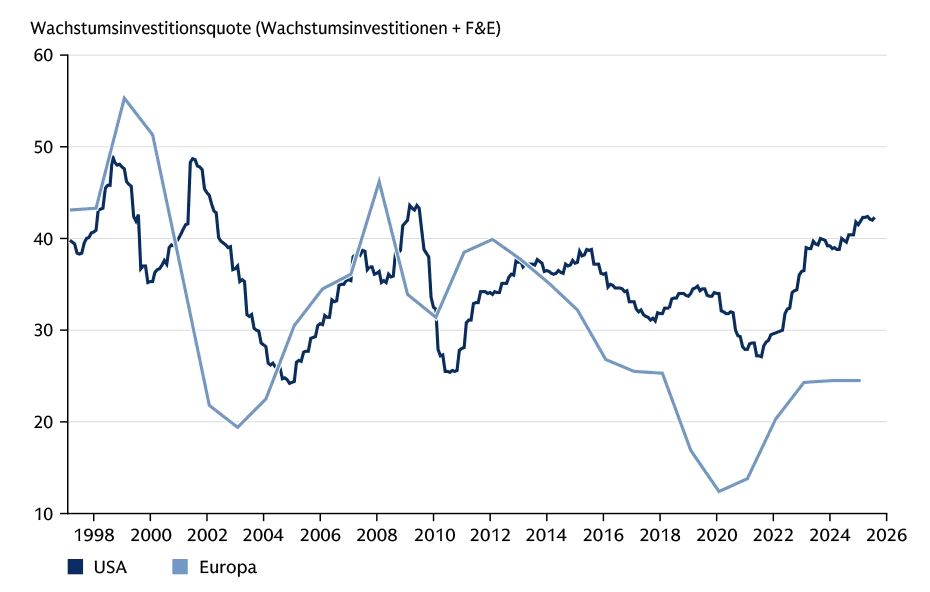 Europäische Unternehmen investieren weniger in zukünftiges Wachstum als ihre US-amerikanischen Konkurrenten. Das wird eine Aufstockung der Investitionen in Technologien, die bisherige Arbeitskräfte ersetzen können, umso wichtiger machen.