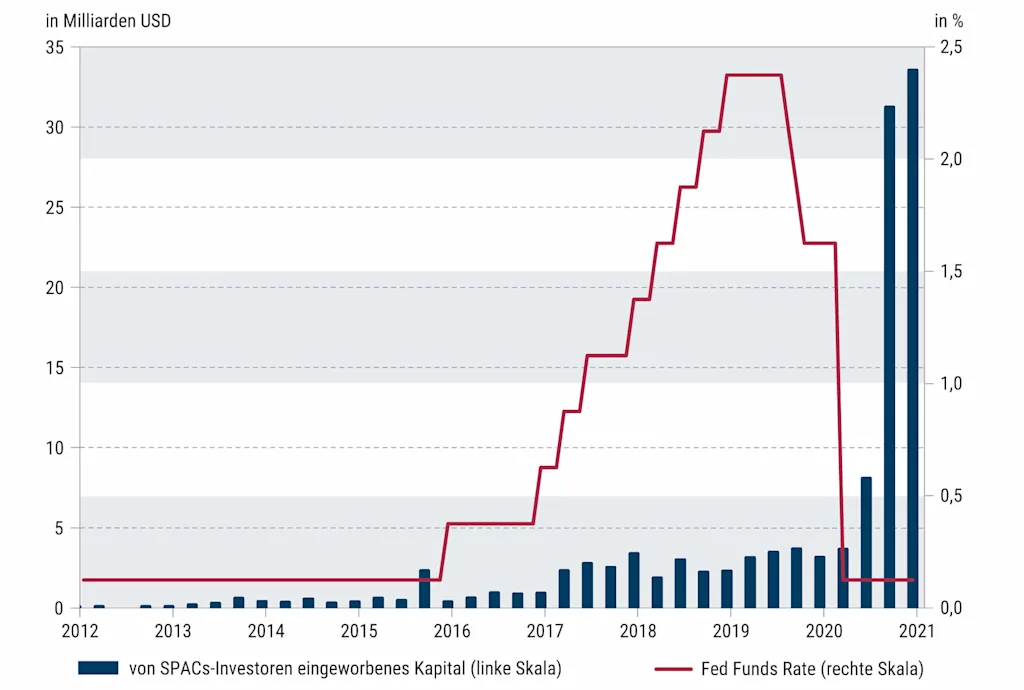 Abb. 3: Niedrige Zinsen, viel Geld für SPACs